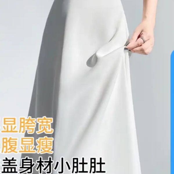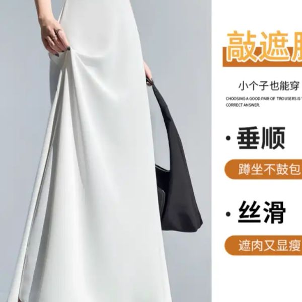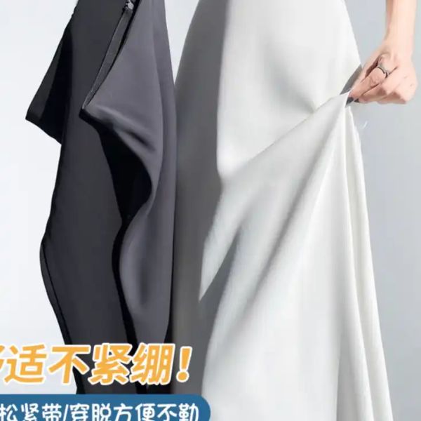 White ice silk drape suit skirt women's summer 2025 new high waist slim swing a-line umbrella skirt long skirt