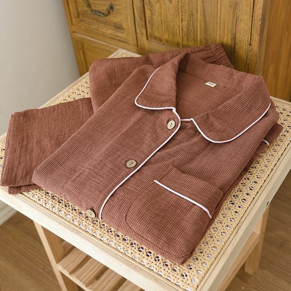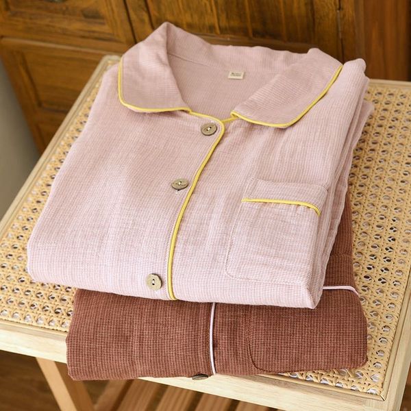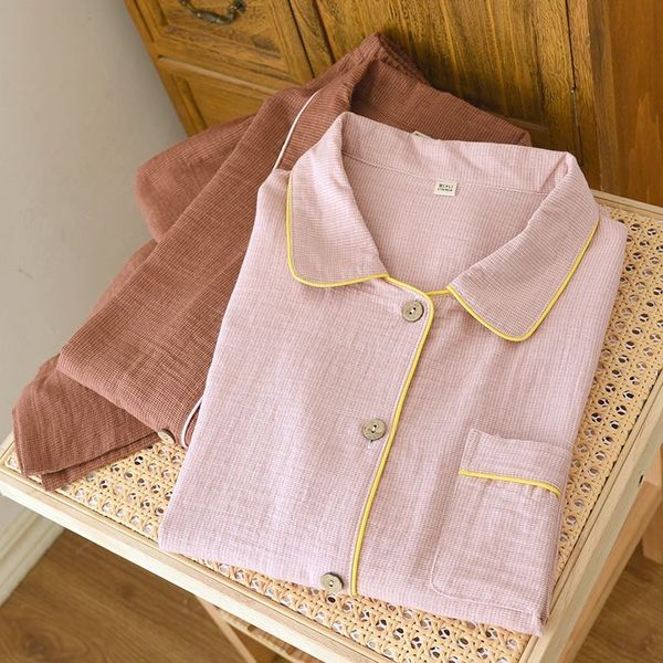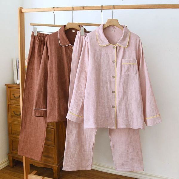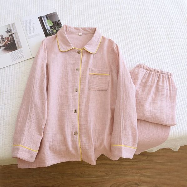 New simple style Cotton Double-layer Yarn Thin Skin-sticking Comfortable Home Wear Women's Long-sleeved Trousers Solid Color Simple Loose Edition