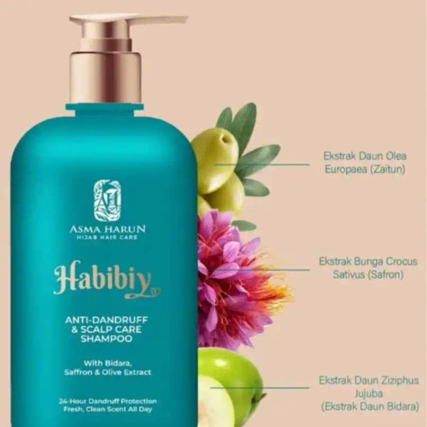 Sovina Asma Harun Habibiy anti-dandruff & scalp care shampoo with bidara, saffron, & olive extract 24-hour dandruff protection fresh and clean scent all day