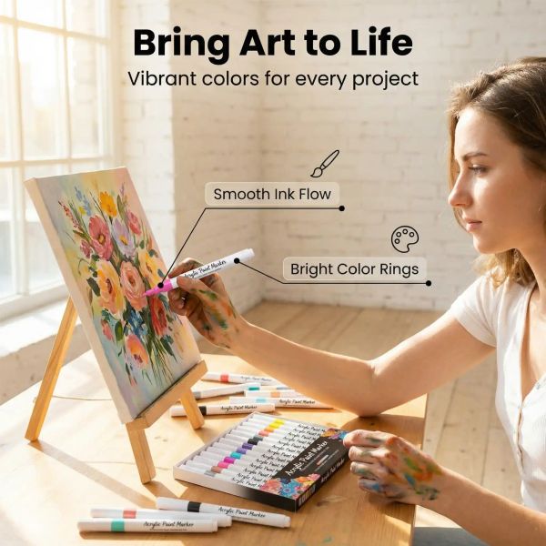 1. Color and Performance: Featuring 11 vibrant color options, ranging from basic shades to trendy macaron colors, the colors are highly saturated. The acrylic paint ink has strong coverage and can be used to draw on various materials such as paper, stone, plastic, and wood. It dries quickly without smudging or fading.