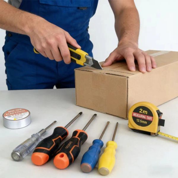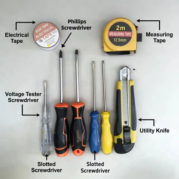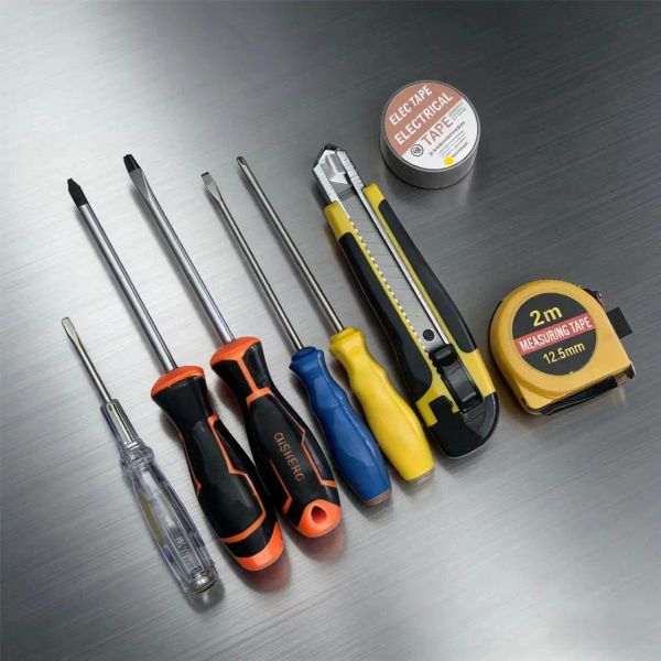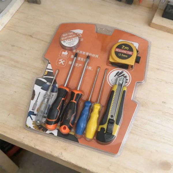 - Specifications: 8-piece set (multimeter × 1, screwdriver × 4, craft knife × 1, 2m tape measure × 1, electrical tape × 1)